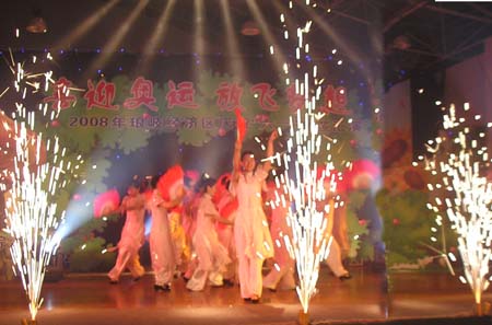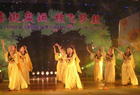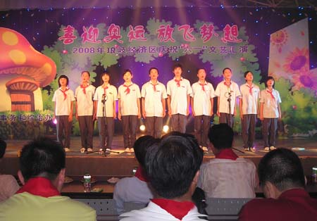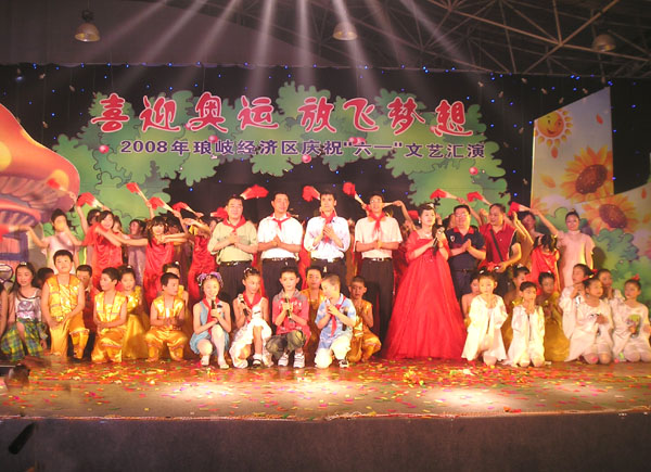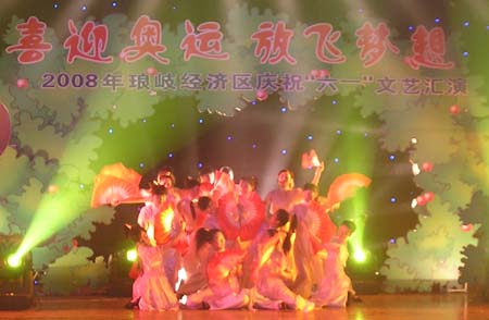 由琅岐经济区社会事务和社会治安综合治理办公室主办的“2008年琅岐经济区庆祝六一文艺会演,5月27日在吴庄华侨小学艺体楼礼堂拉开帷幕。这台会演在黄乃杰等老师的指导下,由各中小学与农林大学东方学院精选的节目,精彩纷呈。会演帷幕拉开,第一个节目是琅岐实验小学合唱队,85位小朋友激情歌唱《美丽的琅岐岛》和《五环童话》,表达了少年儿童对家乡的热爱和对北京奥运会的热切期盼。第二个节目是孝先幼儿园群舞《我为奥运加把力》,优美的舞姿,表达了儿童们喜迎奥运的欢乐。第三个节目是琅岐中学初一学生的诗朗诵《勇敢地迎接下一个春天》,学生用激情的语言,表现中国人民在党中央的领导下,众志成城,抗震救灾,的英雄气概。接下来的节目也都非常精彩,欣贝幼儿园的舞蹈《妈妈亲,老师亲》,把少年儿童在自己欢乐的节日里,无比美好的感恩心情表现得淋漓尽致。欣贝幼儿女教师表演的舞蹈《榴花似火》,轻盈优美,表达了人们对美好未来的憧憬。吴庄华侨小学的舞蹈、走秀《说唱脸谱》,富有情趣,表现了少年儿童的天真活泼,和对中国传统文化的热爱。还有农林大学东方学院小组唱《歌曲串烧》,激情豪迈,表现了当代大学生们的理想,和对生活的热爱。整台晚会高潮迭起,掌声不断,气氛及其热烈。会演结束后,琅岐经济区领导李明、黄志明、郑是平、许善坤等走上舞台,祝贺演出成功。