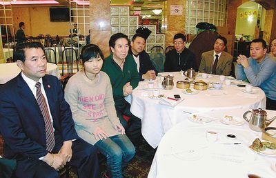 在無法可施的情況下,陳美萍在美唯一胞姊陳美惠(圖左二)26日向閩籍僑團求助。左三為福建同鄉會代主席陳學順。 記者朱文漢∕攝影
