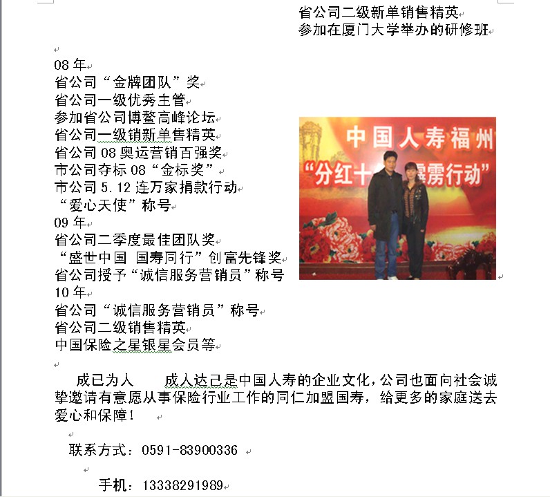 发表日期:2011年8月13日   出处:中国人寿琅岐营业部        【编辑录入:chen2004