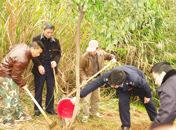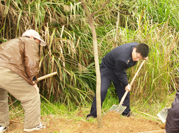 312,是全国第34个全民义务植树节。313上午,春雨绵绵,琅岐地税局干部职工在叶峰副局长的带领下,到琅岐镇院前山开展义务植树活动,进行了一次生动的绿色环保体验。在植树现场,大家拿起锹,扛着镐,提着桶,挖坑、栽苗、培土、浇水,干得热火朝天,山坡上回荡着欢声笑语。不久时间,我们共种下了20株香樟树。看到树苗在微风中轻轻摇摆,迎风而立,虽有天气的寒意,但是大家心里都暖洋洋的。
