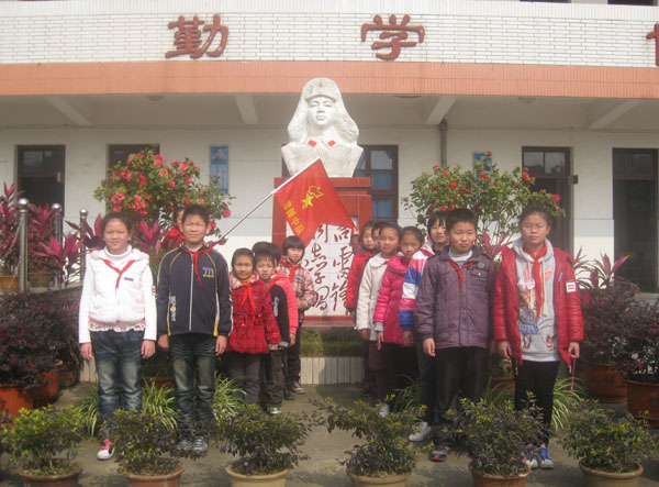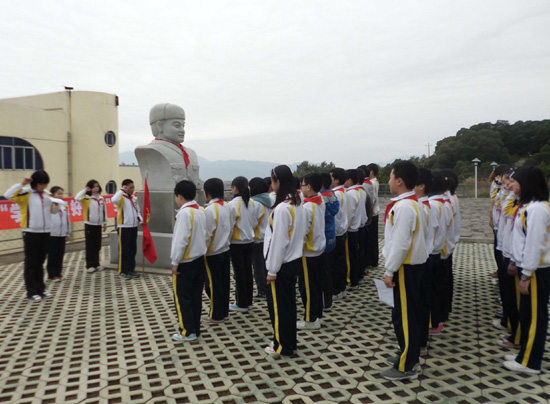 琅岐中学,组织少先队员和团员在校园雷锋石雕像前,举行“学习雷锋好榜样”主题团队日活动。