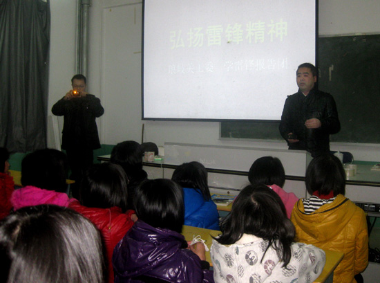 学生代表倡议向雷锋同志学习,并且合唱《学习雷锋好榜样》。