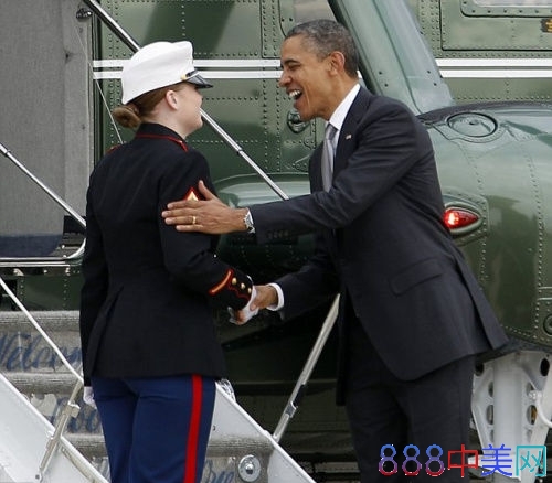 奥巴马弯腰为女兵捡硬币 尽显绅士风度