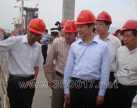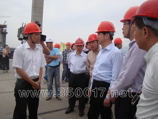 10月15日福州市市长杨益民带领市直有关部门及各城区政府负责人,莅临琅岐闽江大桥Ⅱ标段工地调研、检查工程建设情况。