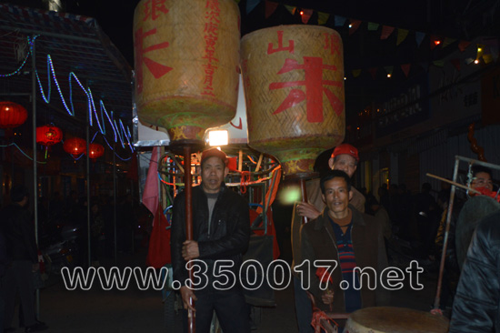 今年朱氏游灯踩街场面相当壮观,走在队伍最前面的是大锣大鼓,接着是显示朱姓宗族名称的“高照”;“高照”后面是传统的“平安灯”。长方形的“平安灯”上写着“国泰平安”、“风调雨顺”、“改革开放”、“科学发展”等词语。