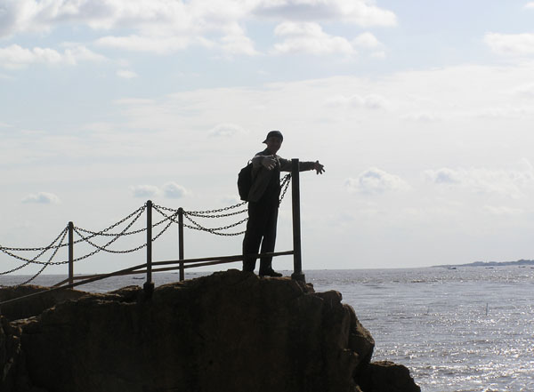 静静地坐于沙上,坐在夏中,品味大海气息。拍岸的水声,给人宁静;是宁静的人听到了禅意的水声,杂念也就远了。于是,悟出:“来者莫忙去者莫忙且坐坐光阴不为人留,功也休急利也休急再行行得失无非天定”这副对联的深蕴意境。末了,实实在在有碧海一揽入胸怀的勇者气概,又有闲坐沙岩看日赏月的自若泰然。