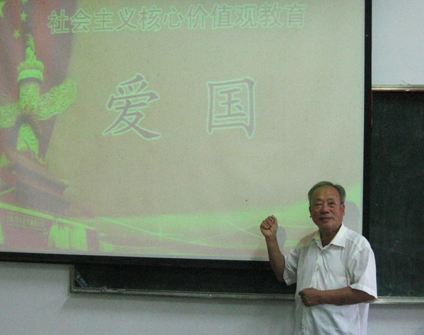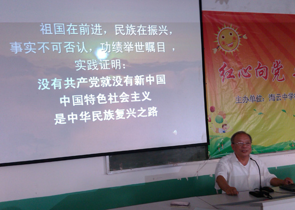 海云中学、金砂中学等在庆祝新中国成立65周年前夕,邀请琅岐关工委老同志朱立仪老师为同学作社会主义核心价值观教育——爱国篇的报告。