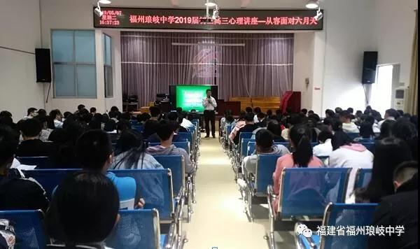 距离高考、中考还有一个月的时间,为了给紧张复习的高三初三学生减减压,以更好的状态走上考场,琅岐中学学校德育处和心理咨询室组织了一场考前心理调适讲座——从容面对六月天。这次讲座很荣幸邀请到了陈然主任(福建省心理咨询师协会副秘书长、社会心理服务专委会副主任,马尾区未成年人心理健康辅导中心主任,中国心理拓展教育研究院培训师)