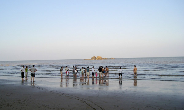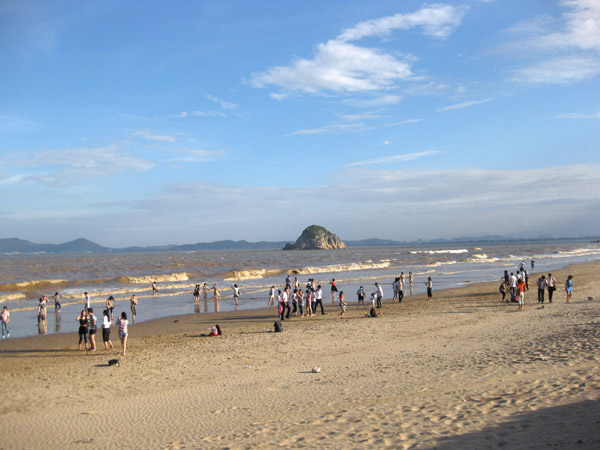 每当农历八月十五天文大潮,慕名到这里观潮的游客更多。只见浊浪排空,如排山倒海之势向海堤冲击,惊险欲绝,“海堤观潮”也成为度假村一景。