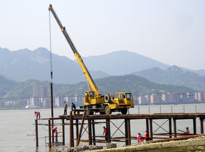 为了保证琅岐码头修建工程顺利进行,争取早日投入运行,修建工程队“五一黄金周”不放假,坚持施工,我们看到工地一片紧张繁忙景象。