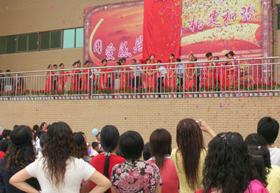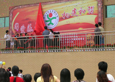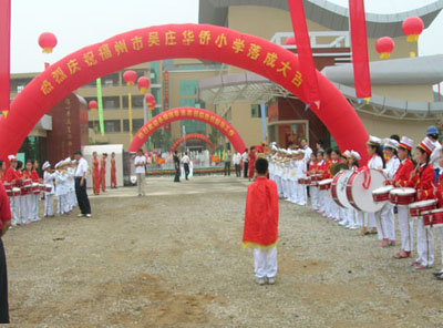 吴庄华侨小学26日上午隆重举行新校园落成剪彩仪式。这天,雨后初晴,天空湛蓝,阳光明媚。新校园彩旗飞舞,气球飘荡,鼓乐喧天,充满热烈的喜庆气氛。庆典仪式在新建的宽敞明亮的综艺楼举行。马尾区郑有光书记等应邀莅临庆典大会。大会由琅岐区党工委副书记黄志明主持。吴庄村负责人介绍了新校园建设情况;琅岐区党工委书记区李明在会上讲话,对吴庄华侨小学新校园落成表示热烈祝贺,对爱国华侨热心家乡建设,关怀教育事业发展予以高度评价;爱国华侨代表在会上讲话表达了广大华侨爱国爱乡的赤子热忱。大会在剪彩、揭碑、受匾和文艺演出等穿插进行中,不断把热烈气氛推向高潮。