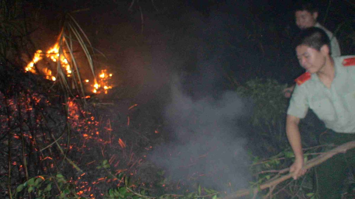 年9月17日晚20时许,海云边防派出所接警称:琅岐海屿村天后宫附近山坡发生火灾。接警后,该所迅速组织官兵驱车前往,三分钟后到达现场。现场村民们虽然正在救火,但着火的山坡上火势还是很大。见此情况,该所干警立即分头行动,一边疏散围观群众、指挥村民协助救火,一边从另一山坡爬上山头从上往下接水灭火。五分钟后,该所另一队官兵赶到,协力将火势压制。十五分钟后,琅岐镇消防车赶到现场,并将火彻底浇灭。