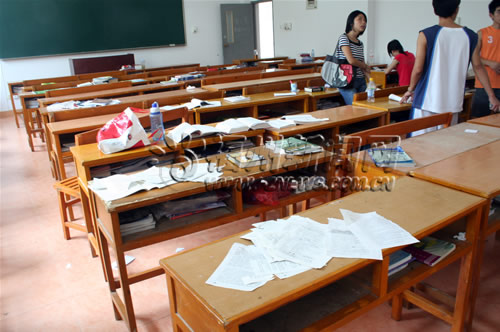 20日上午7时许,位于琅岐岛龙鼓度假村的福建农林大学东方学院内,惟一的24小时自习课室内一片狼籍,留在课室里“过夜”的近百本课本被撕得面目全非,随意抛撒在地。据初步了解,该恶作剧