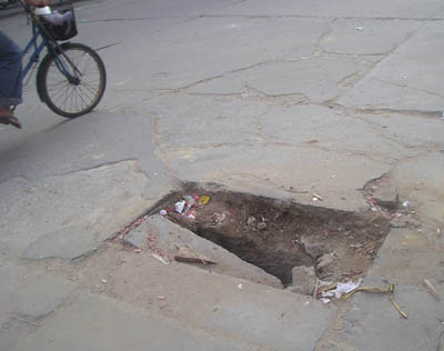 琅岐计生楼前三叉路口路段,有一阴沟水泥盖断塌,成为交通一个的隐患。已经有一个月了,没有人来修复,一些单位也推来推去。好心人用一个破沙发填上,免得人车掉进陷阱,但这并非好办法,希望政府管一管,赶紧责成有关部门来处置。