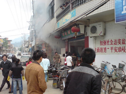 今天下午12点30左右,琅歧某酒店厨棚着火,差点酿成大祸。据了解,原来是煤气没了,店家在换煤气的时候,由于操作不当,突然间喷火,火势越烧越大,幸好众人扑灭及时,没有造成火灾。