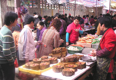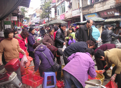 今天(农历廿八),老天爷赏赐,又是一个晴天,琅岐年味愈加浓厚,市场里摩肩接踵,人声鼎沸,人满为患。年货货源非常充足,鱼肉禽蛋,蔬菜瓜果,生鲜干货,成品半成品,应有尽有。价格也很平稳,与平时相比,基本持平;大番鸭减比平常更便宜,每斤不过11元。为了让群众买上放心年货,琅岐工商行政管理人员在市场巡视监督,加强管理,秩序井然。