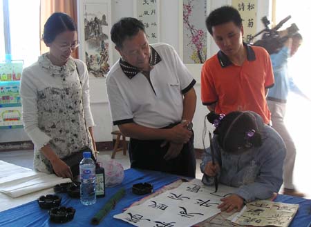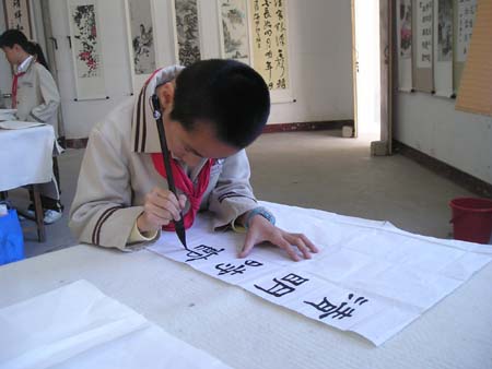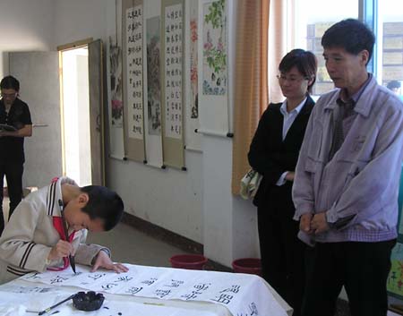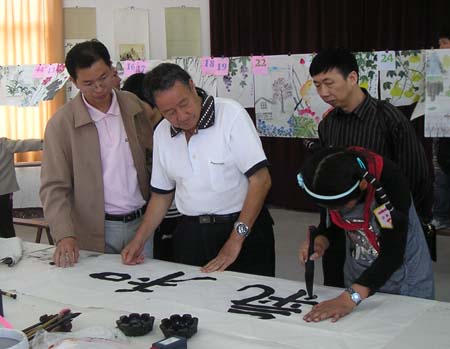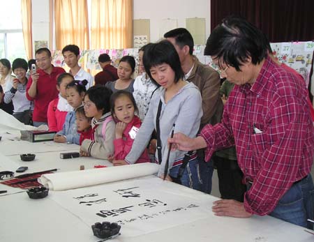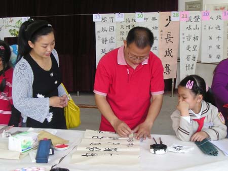 琅岐实验小学4月14日举办“丹青妙笔迎奥运”书画笔会,百名小朋友现场挥毫书画,展示了自己的艺术才能,更显示了学校素质教育的丰硕成果。著名书画家陈奋武、江爱松、朱大明等莅临观看并作评点,他们还现场作了表演