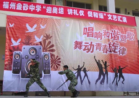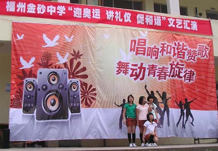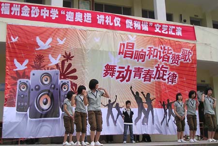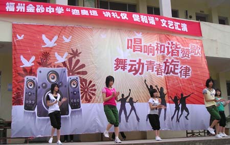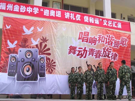 15日下午,金砂中学文艺会演在大操场拉开帷幕,各班级同学积极参与,自编自演许多节目,形式多样,演出精彩纷呈,充分展示了同学们的艺术才能,也表现了学校在贯彻素质教育中的丰硕成果。学校共建单位—522电台驻金砂官兵也参加了会演。琅岐经济区教育关工委和一些学校的领导应邀观摩了演出。