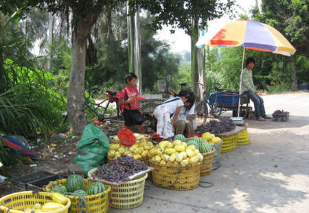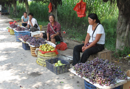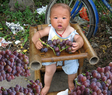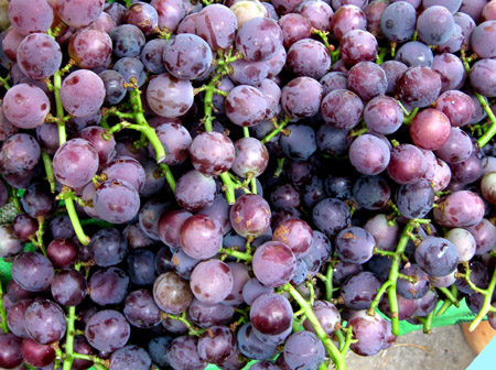 琅岐黑葡萄以粒大、皮薄、只少、色彩鲜艳、甜蜜可口而闻名遐迩,今年雨水充沛,琅岐黑葡萄长势特好,收成前一个月又天晴无雨,促使葡萄甜度大增。目前琅岐黑葡萄火爆上市,福州各超市均有零售,在琅岐(产地)一市斤只买一元多钱。