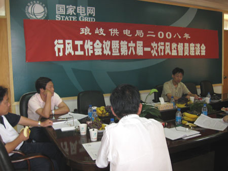 琅岐供电局认真贯彻国家电网公司关于服务社会主义和谐社会的主张和承诺,以客户为中心,服务至上,积极履行社会职责,为琅岐经济建设和社会的和谐进步做出积极贡献,几年来在琅岐“行评”中名列前茅。7月24日,琅岐供电局召开行风工作会议暨监督员座谈会,制定2008年民主评议行风工作实施方案,听取监督员意见与建议,真抓实干,力争民主评议行风工作上新台阶。