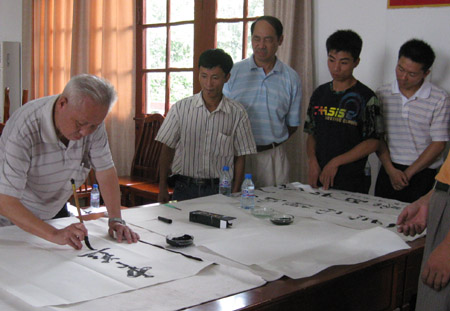 今天,琅岐镇首届农民书法笔会开幕,二十多名农民书法高手挥毫,书写喜迎奥运语句,以中国传统艺术表达对奥运的激情。