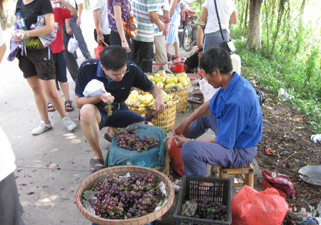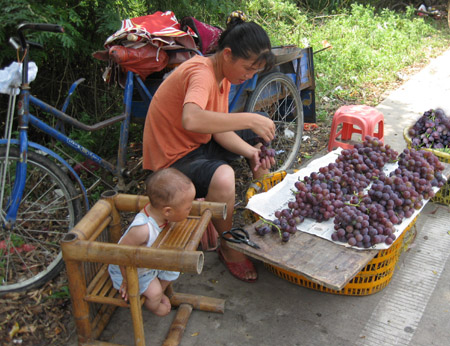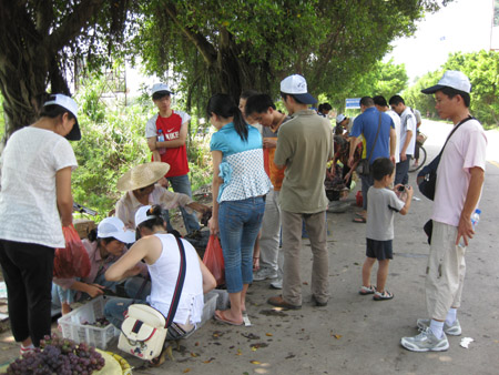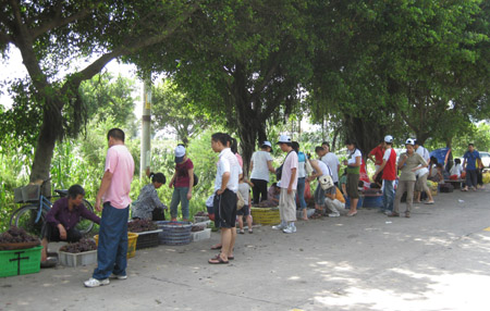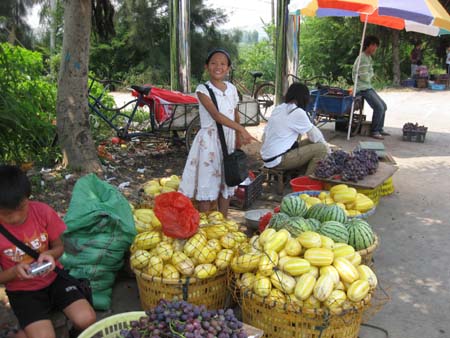 琅岐黑葡萄、黄甜瓜等闻名遐迩,火爆上市,顾客争买,许多人驾驶车辆专门到琅岐采购,到琅岐的游客争更是竞相购买,满载而归,因此,在通往琅岐大桥的雁行路两边水果摊绵延。这些摊位瓜果飘香,生意兴旺,果农吆喝声、顾客讨价还价声不绝于耳,形成一道别有风趣的风景线。