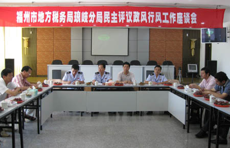 8月21日上午,琅岐地税局召开民主评议政风行风和税源企业负责人座谈会,通报了2008年上半年地税局的工作和加强政风行风的方案,征求行风监督员和税源企业负责人,以及琅岐经济区有关领导的意见。