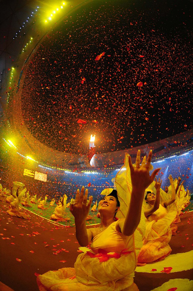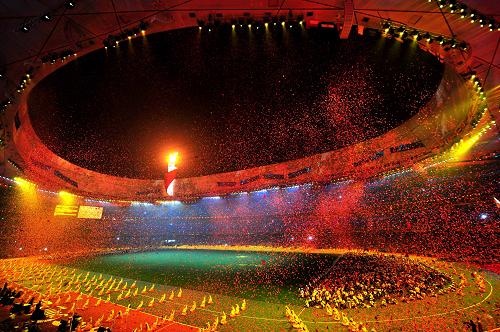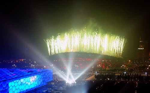 璀璨焰火闪耀鸟巢上空。新华社发