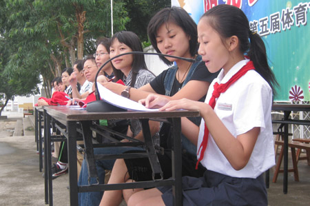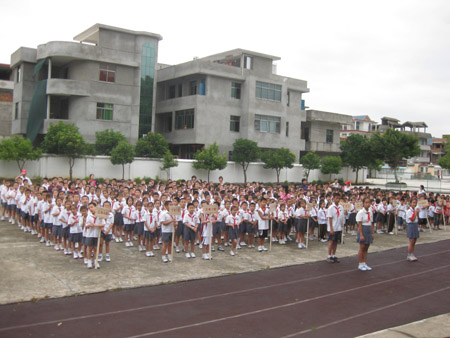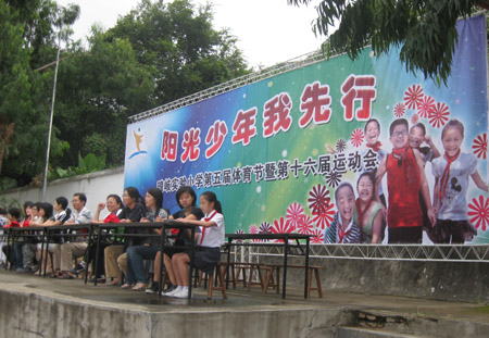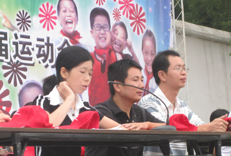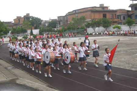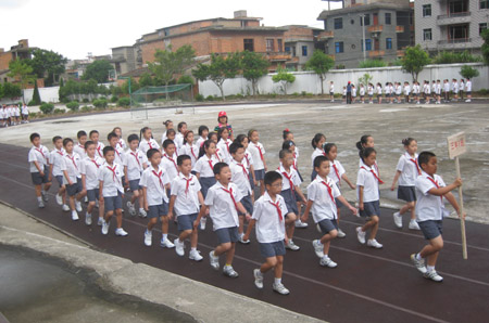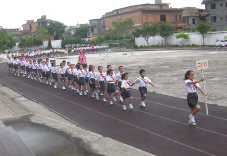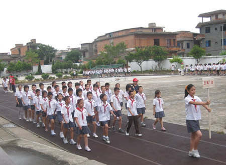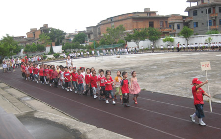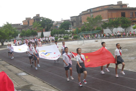 琅岐实验小学第五届体育节暨第十六届校运会今天上午拉开帷幕。全校24个班级一千多学生在鲜艳的五星红旗指引下迈着整齐的步伐入场;校长陈飞宣布校运会开幕,举行了升旗仪式之后朱雪英副校长致词;接着运动员、裁判员代表宣誓。整个开幕式隆重而热烈,显示了实验小学朝气喷薄,积极向上。