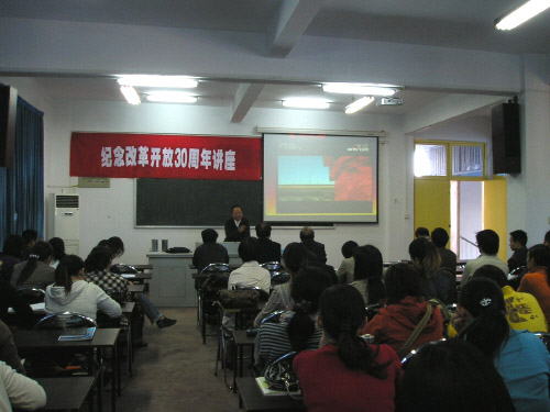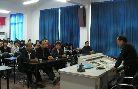 这次讲演对象主要是学校教职工与基层干部,朱立仪老师作了充分准备,内容充实典型,视频生动形象,特别他积累的大量新旧照片、录像资料,其中穿插党的十七大重要论述与个人体会,理论联系实际,令人感同身受。听了朱立仪老师的讲座,大家深受教育,表示要深入贯彻落实十七届三中全会精神,坚定不移走改革开放道路,在学习实践科学发展观活动中,立足本职,振奋精神,努力把工作做好。