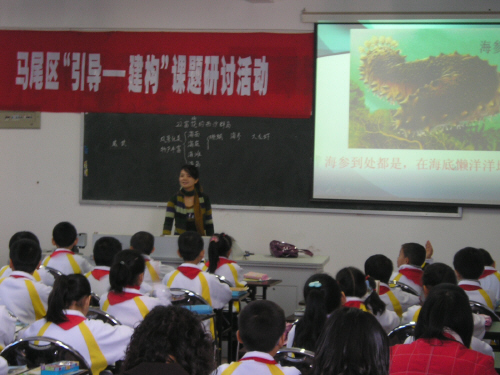 2008年11月27日上午,琅岐实小多媒体教室里座无虚席,会场里一片浓厚的研讨气氛。这里正举行着马尾区“引导——建构单元教学结构研究”课题研讨会。来自全区8个兄弟学校150余名语数教师及马尾进修校小学教研室、教科室的领导、专家参加了活动。