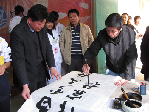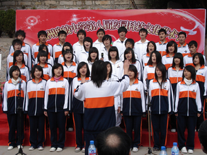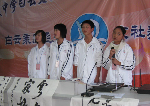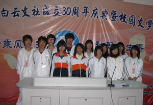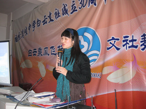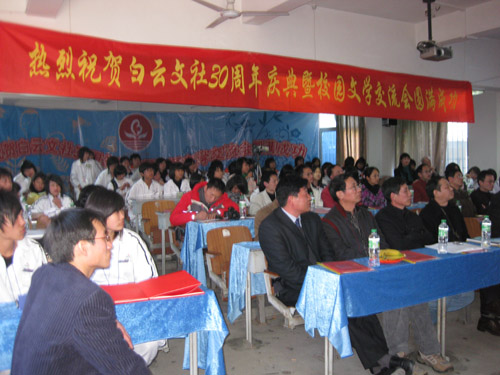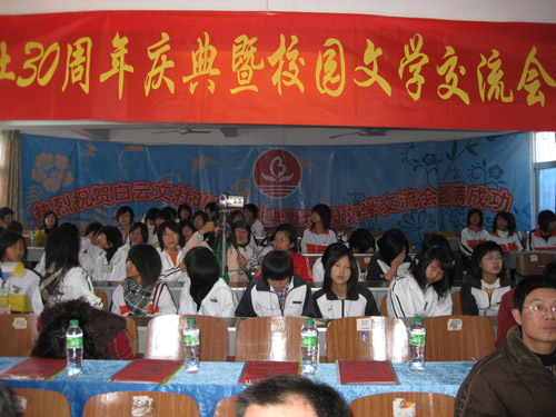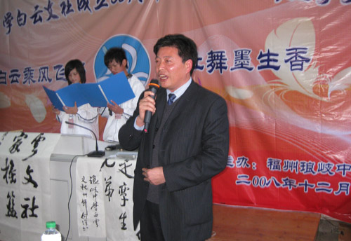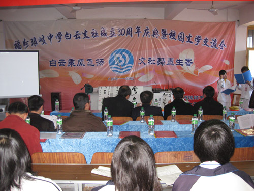 今天(12月25日)琅岐中学隆重举办第八届校园艺术节暨白云文社30周年纪念庆典,应邀参加活动的领导有马尾区宣传部长俞建春、宣传部副部长林宇、省政协常委海峡文艺出版社社长何强、马尾区教育局长黄国华、马尾区文联主席朱大明,和琅岐经济区领导郑是平、黄志明、江枝玲,以及《福建日报》、《海峡时报》、琅岐经济区新闻中心、福州教育学院、马尾区进修校领导专家,以及兄弟学校领导老师30多人。上午在学校大操场举行文艺演出,十分精彩;周围许多学生书画展版也十分引人;下午在学校多媒体教室进行文社30周年庆典活动,展示了文社30年丰硕成果与文社社员风采,校园文化互动更是精彩纷呈。