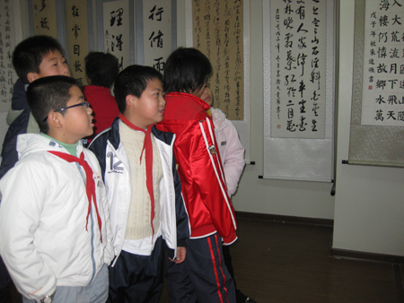 1月6日,琅岐书画社组织社员和实验小学书法兴趣小朋友50多人,赴马尾、连江参观两处“纪念改革开放30周年书法作品展。这两处书展规模大,书法作品技艺高超,风格各异,极具观赏功能。