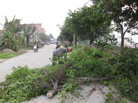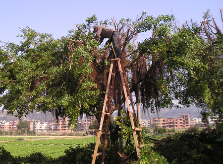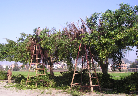 为保持琅岐环岛公路两旁榕树长势良好美观,最近园林工人对路旁榕树进行修剪,过路行人应注意安全。