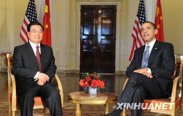 胡锦涛主席在伦敦首次会晤美国总统奥巴马