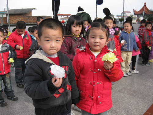 上岐幼儿园小朋友献上小花表达对先烈的无限敬意