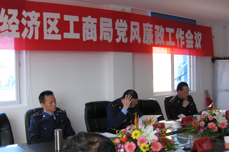 为进一步加强党风廉政建设和民主评议政风行风建设,建立统一的外部监督机制,强化民主监督和社会监督,促进工作人员依法行政,树立良好执法形象,琅岐工商局4月0日召开党风廉政工作会议.会上传达了省市工商局党风廉政工作会议精神,对2008年工作进行总结,对2009年工作进行安排,并聘请七位同志担任2009年党风廉政监督员和民主评议政风行风评议代表。
