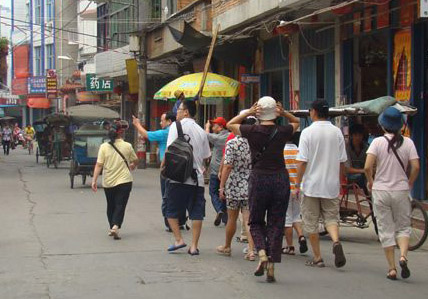 外地游客漫步老街