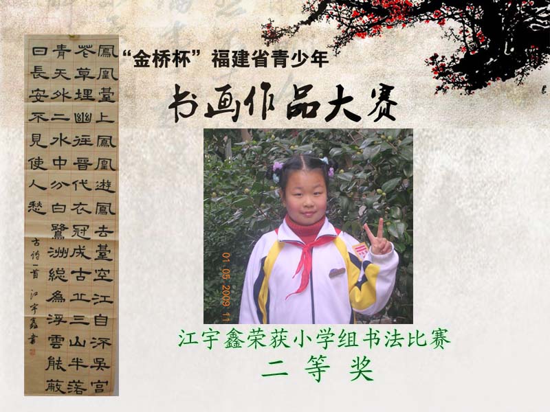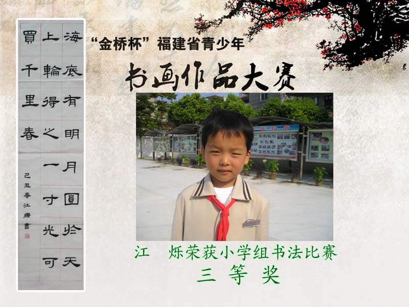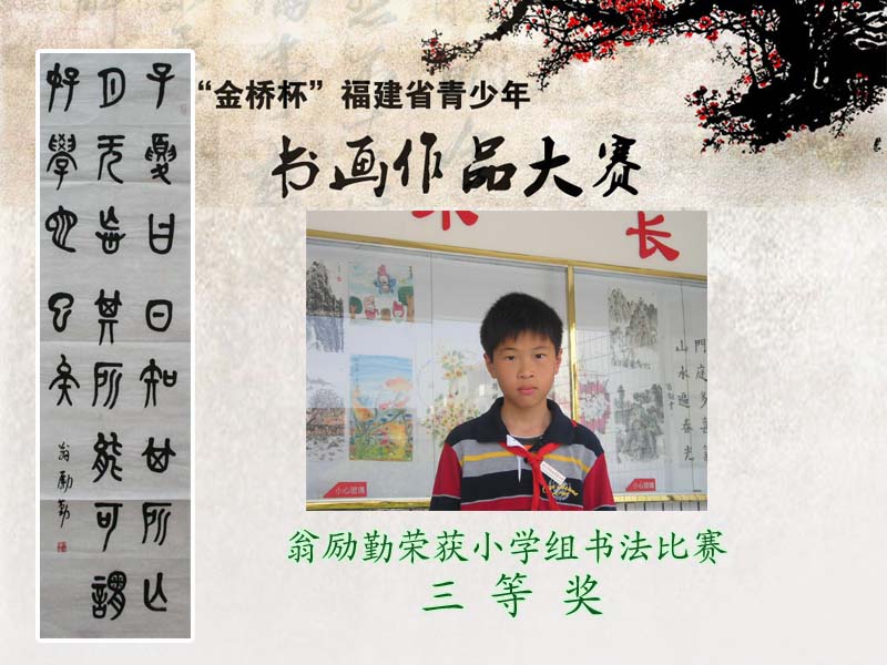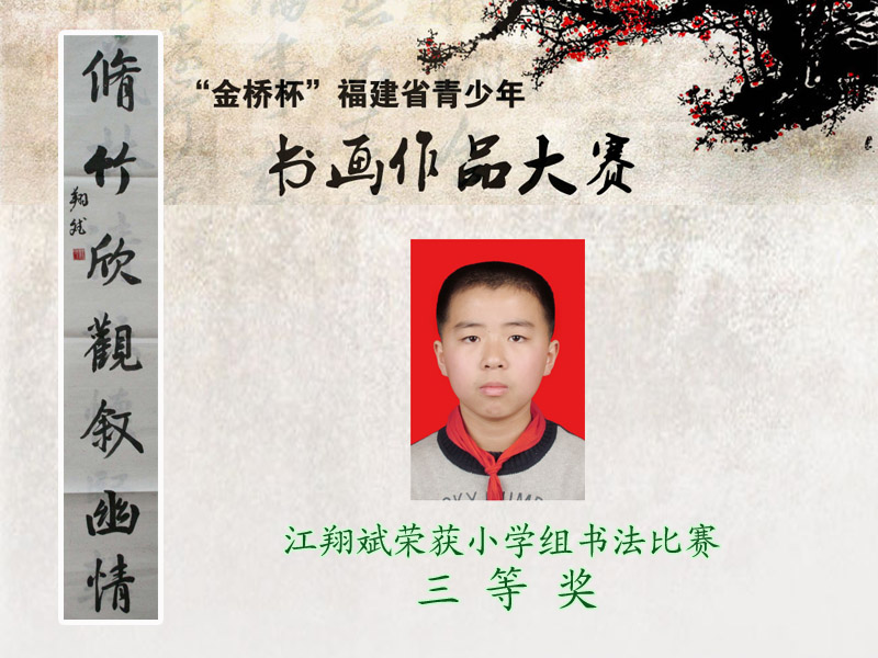 据琅岐实验小学网站报道,五一劳动节前夕,由东南快报社、共青团福建省委、福建省青少年宫协会主办的“金桥杯”福建省青少年书画作品大赛完美落幕。经过初赛、复赛、现场赛,琅岐实验小学6名选手从2000多名参赛者中脱颖而出。江宇鑫同学荣获小学组书法类比赛“二等奖”;江翔斌、翁励勤、翁旭昇、江 烁4位同学荣获小学组书法类比赛“三等奖”;朱淑睿瑶同学荣获小学组美术类比赛“三等奖”。学校荣获“大赛组织工作奖”。参赛选手出色表现为学校赢得荣誉,标志学校传统书画教育又上了一个新的台阶。