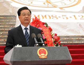 青山寂静倾听深切思念,岷江奔腾激扬奋进力量。5月12日下午,当四川汶川特大地震这个举世震惊的危难时刻过去整整一年之际,纪念四川汶川特大地震一周年活动在震中汶川县映秀镇隆重举行。中共中央总书记、国家主席、中央军委主席胡锦涛出席纪念活动并发表重要讲话,向在地震灾害中不幸罹难的同胞们、向为夺取抗震救灾斗争重大胜利而英勇献身的烈士们表达深切思念,号召全党全军全国各族人民大力弘扬伟大抗震救灾精神,奋力夺取抗震救灾斗争全面胜利。