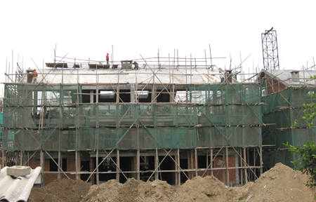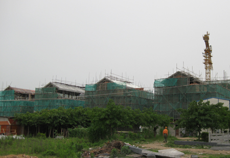 琅岐红光村是福州市社会主义新农村先进村,为了改善村民居住条件,体现现代生活时尚,经有关部门审批,在红光公园东侧划地20多亩,兴建“红光新社区”。新社区拟建筑高层住宅楼(11层电梯)三座,共计60单元,另外建筑33幢别墅楼。日前工程进展快速,,大多别墅楼已经封顶,高层住宅楼建设也日益升高,整个工地热火朝天。