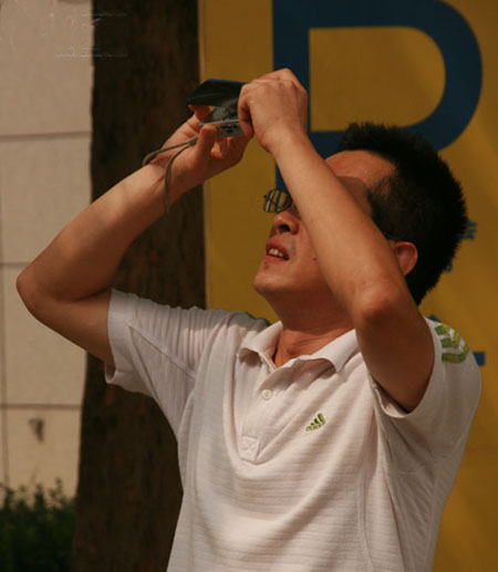 今天琅岐群众怀着极大的兴趣观看罕见的日食现象。