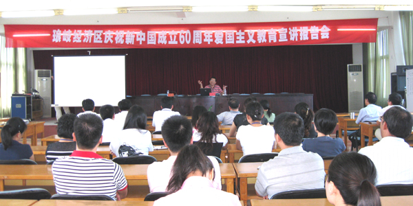 今天(9月11日)琅岐经济区举办“庆祝新中国成立60周年爱国主义教育宣讲报告会”。报告会邀请福建师大教授贺晓军作《60年巨变》报告,报告会由区党政办主任吴红城主持,琅岐区镇干部和中小学校长一百多人到会听讲。贺晓军教授从新中国60年伟大成就、福建与福州60年面貌变化、阐明中国特色社会主义、改革开放是中国复兴之路的深刻道理。