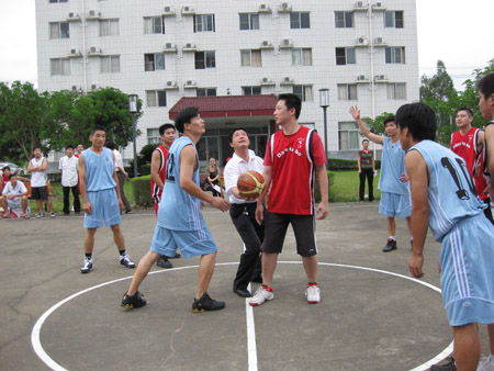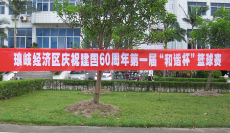 为庆祝国庆60周年,促进新农村精神文明建设,推进全民健身活动的开展,琅岐经济区第一届“和谐杯”篮球赛今天(9月21日)下午在区管委会操场举行,琅岐经济区党工委副书记黄志明为比赛开球。