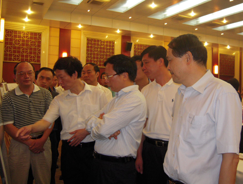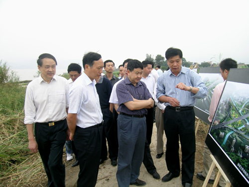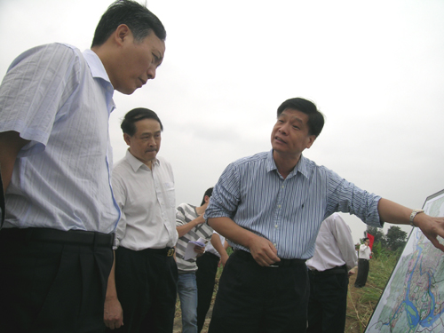 苏增添副省长与马尾区委书记郑有光、琅岐党工委书记高洪霖等研究琅岐建桥方案