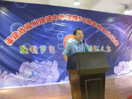 下午2时30分,琅岐中学“建校50周年校友论坛拉开帷幕。校友江爱华、陈坚、何强、江爱瑞、朱立业、何义萍、江敬艳等围绕“激情岁月,精彩人生”论坛主题,联系个人成长经历,作了精彩发言。他们发言的共同点是爱国爱乡,都把可爱的琅岐岛作为自己扎根的地方,成就理想,努力将海岛文化的包容、大度、执着、进取体现在自己人生道路上。他们没有鄙视琅岐学子身上的“泥土”味,“草根”性,却作为前进的不竭动力,描绘出精彩人生。许多在校的学生参加了论坛,聆听校友的感悟感言,深受感动,给他们巨大的教育与启迪。