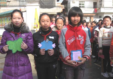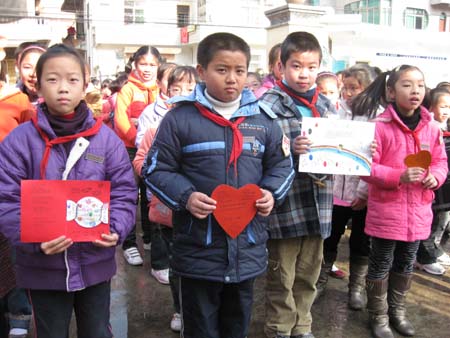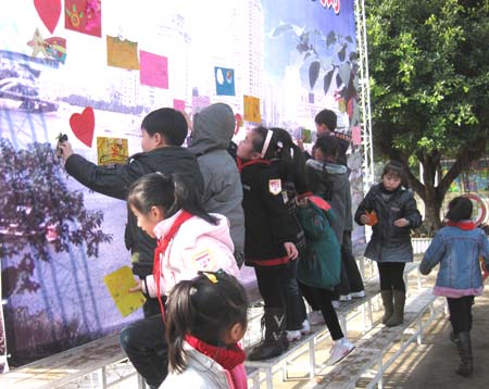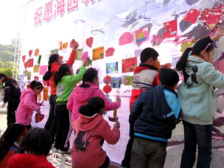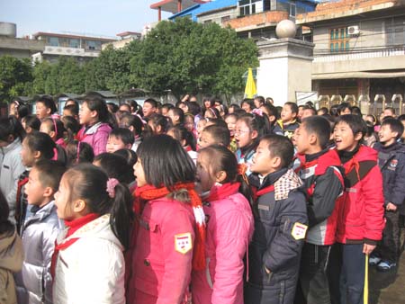 琅岐实验小学举办全校学生制作“祝愿海西明天更美好”心愿卡活动。献卡活动今天(12月30日)上午在大操场拉开了帷幕。首先由琅岐经济区(镇)关工委副主任朱立仪老师致词,他介绍了有关海峡西岸经济区建设和琅岐岛在海西建设中的作为之后,深情地说:“海西! 苍茫的绿色是她的生机, 涌动的春潮是她的活力。琅岐岛是海西的一颗明珠,随着海峡西岸经济区建设的深入,这颗明珠将更加璀璨,让我们祝福海西,祝福琅岐!”