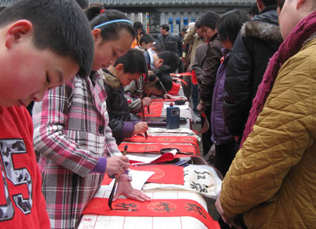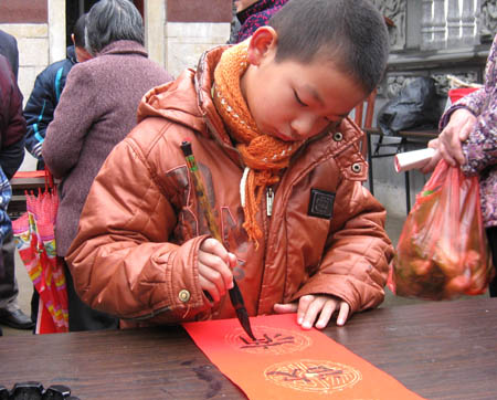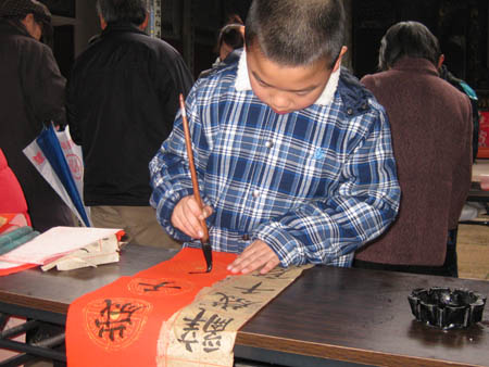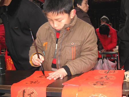 为迎接2010年新春佳节,琅岐经济区将举办多场赠送春联活动。首场赠送春联活动由马尾区司法局、琅岐书画社联合主办的“小书法家赠写平安春联活动”,今天(24日)上下午分别在江氏宗祠和镇政府门前拉开序幕。琅岐实验小学少年书法兴趣小组成员临场挥毫书写。