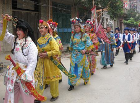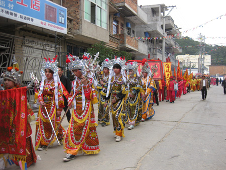 活动完全由村民自行组织,队伍十分浩大,连绵数里,参夹有舞狮、舞龙、高跷、腰鼓、肩头戏等文艺表演,相当于盛大的迎春踩街活动。观众人山人海,喝采、焚香、放鞭炮,煞是热闹。让人感受到地道的浓郁的民俗文化。