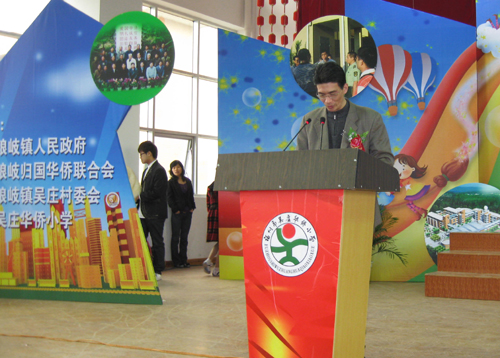 开发区副主任、马尾区副区长,经济区党工委书记、管委会主任高洪霖同志在典礼上说,“授人玫瑰,手有余香,奉献爱心,收获希望”。吴庄华侨小学在社会各界人士的关心和支持下,在海内外乡亲和建校理事会各位理事的共同努力下,建设成为一座琅岐乃至整个闽江口地区最美丽的花园式小学校园。从海内外乡亲捐资建校的义举中,我们看到了社会各界人士对琅岐教育事业发展的关爱。我们不仅是接受了你们的捐赠、支持,更重要的是接受了一种热心公益的精神力量。他说,2010年对琅岐而言是具有特殊意义的一年,它既是我们琅岐经济区成立十周年,也是琅岐面临重大发展机遇的一年。他希望海内外乡亲今后一如继往地关心支持家乡经济建设和各项社会事业的发展。他表示相信在各级领导和社会各界的关怀和帮助下,琅岐必将站在新的历史起点,抢抓机遇,乘势而上,凝心聚力,昂首迈进琅岐开发建设新时代。